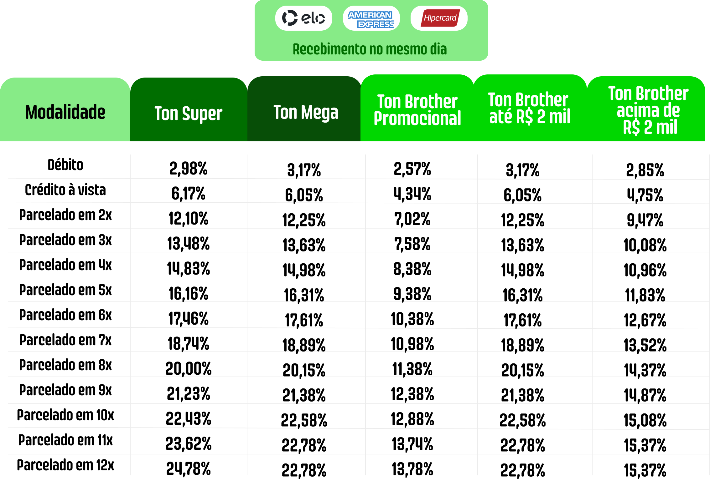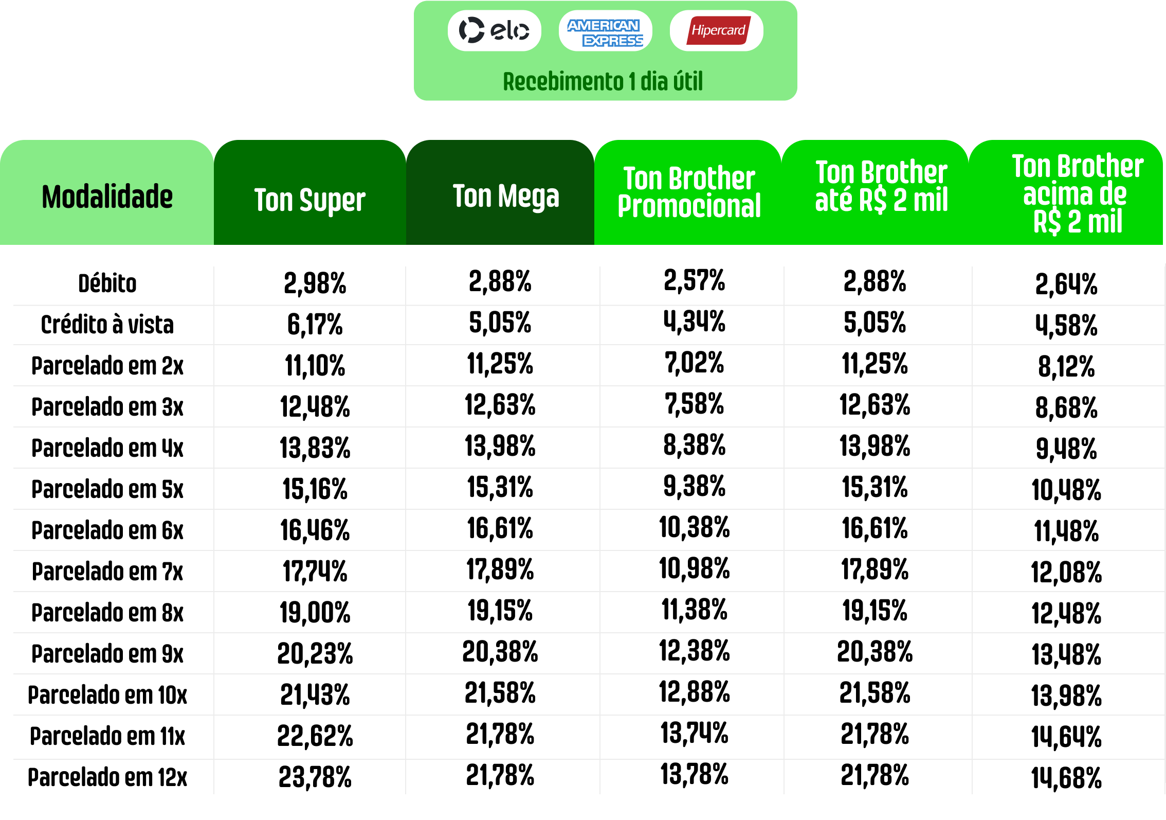 No plano Ton Ultra, você tem as menores taxas independentemente das suas vendas mensais.